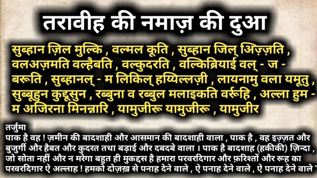 बहुत से लोग taraweeh ki dua hindi mein likhi hui ढूँढते हैं। यहाँ पूरी हिंदी टेक्स्ट दी जा रही है ताकि आसानी से पढ़ा और याद किया जा सके: